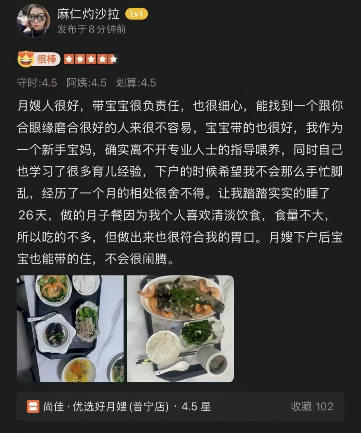 花姐待人熱忱,做事認真又負責(zé)任。一直服務(wù)與潮汕地區(qū)家庭,潮汕話說的也是非常流利。在工作期間對寶寶照顧無微不至,有耐心,給寶寶護理方面很細心,比較注重細節(jié),很細致周到,護理手法熟練使客戶很放心。她細心照顧寶媽飲食起居,給予合理安排月子餐飲食,使寶媽得到很好的恢復(fù),也教會了客戶很多照顧寶寶方面的知識。