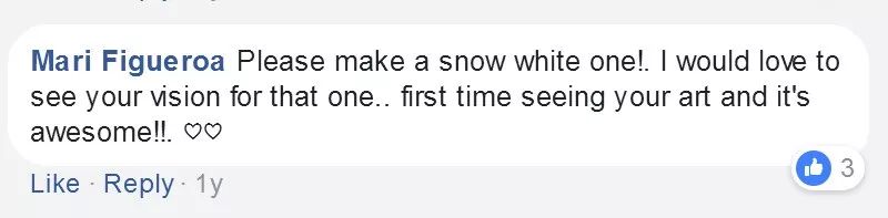“畫一個(gè)白雪公主的吧!我很想看看你會(huì)畫成什么樣子...這是我第一次看到你的創(chuàng)作,太贊了!?。 ?/span>
