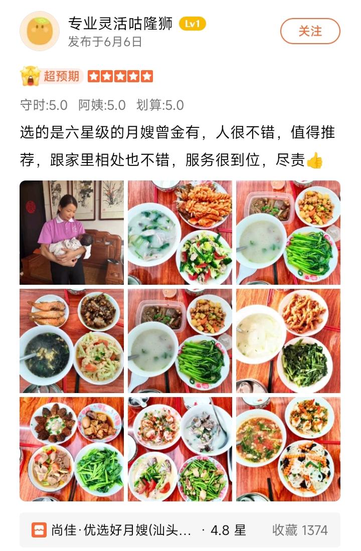 月嫂阿姐各方面都Very可以,月子餐口味非常合適,廚藝很棒,包括帶寶寶很專業(yè),在這個過程中學到很多東西。