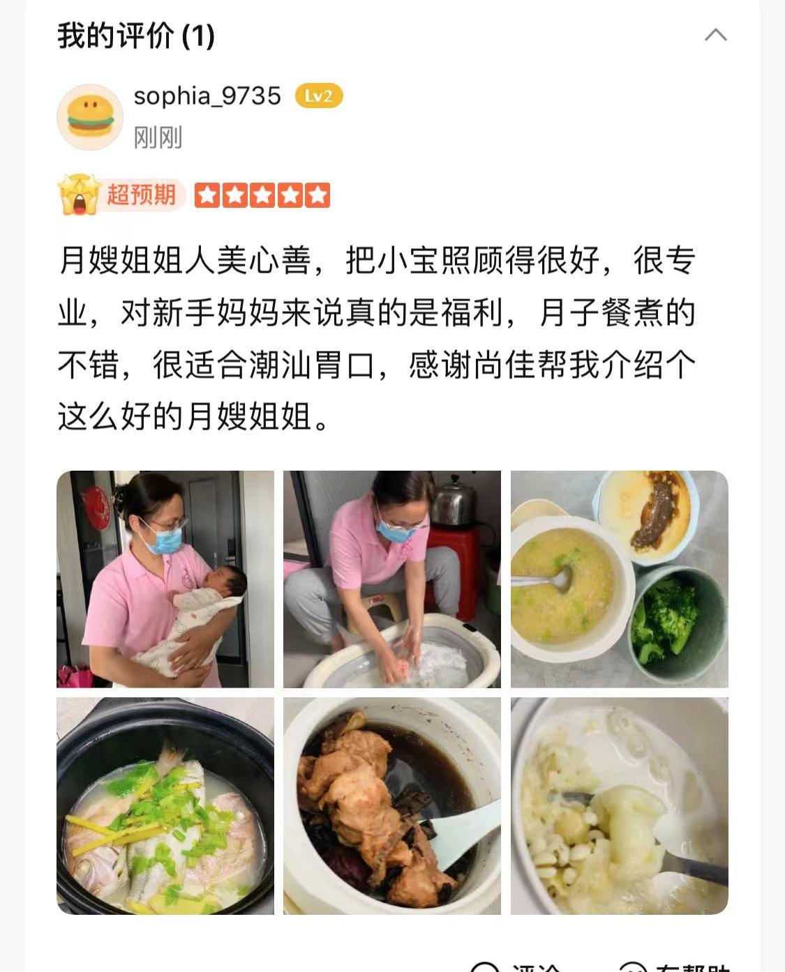 林少麗姐姐是土生土長的汕頭本地人,極具耐心,有較豐富的育兒經(jīng)驗,自信大方,侃侃而談,在母嬰護理照顧方面非常專業(yè),對寶寶黃疸觀察、紅屁股預防;寶媽順產(chǎn)、剖腹產(chǎn)的護理都非常的有專業(yè)性,月子餐烹飪也非常頂呱呱的;深受廣大潮汕家庭客戶的認可與信任