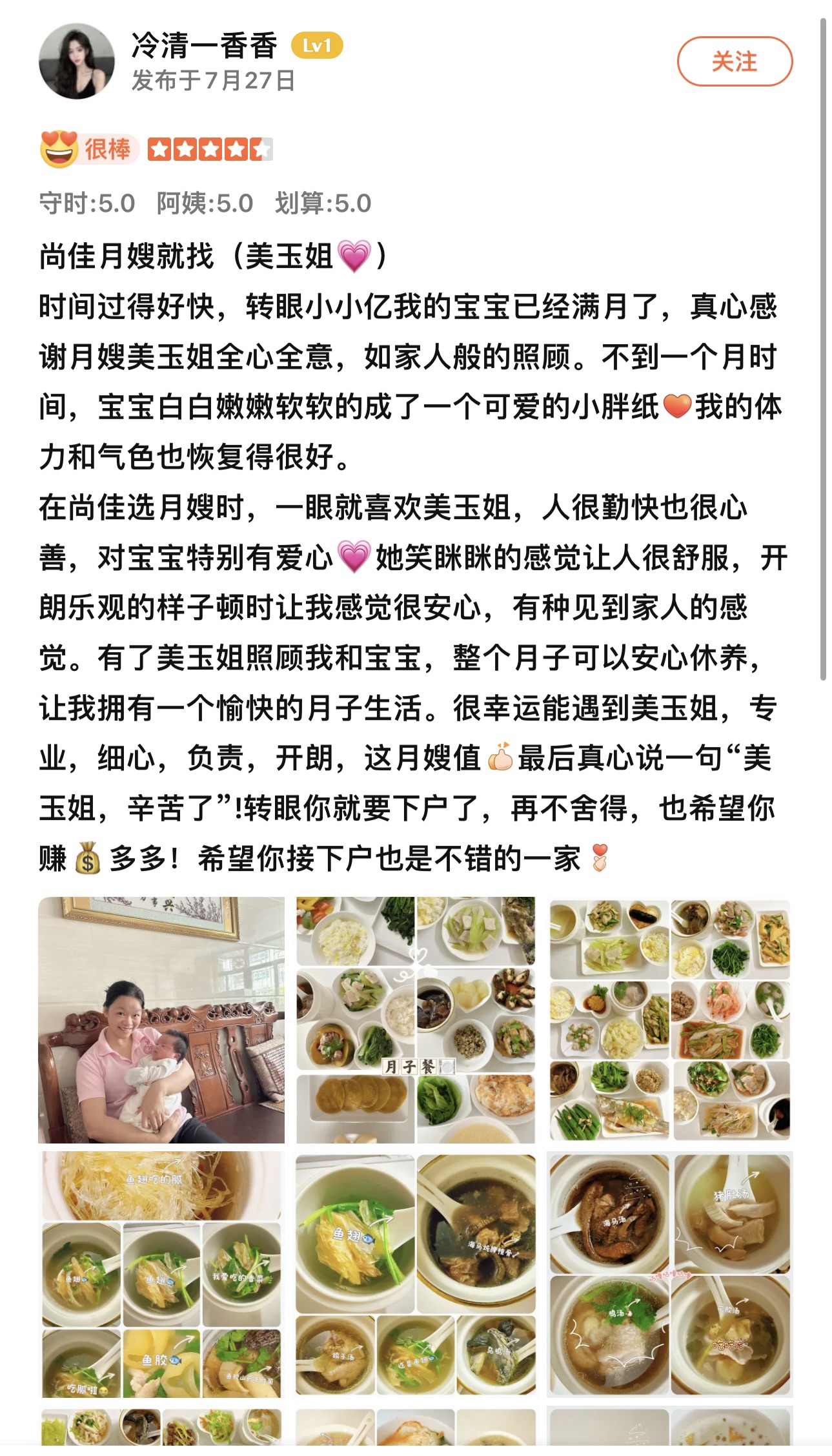 曾姐饒平客家人,笑容滿面的對(duì)待身邊的人事物,服務(wù)過的寶媽和家里人都非常喜歡她。對(duì)待寶寶溫柔細(xì)心,經(jīng)常和寶寶互動(dòng)。醫(yī)院護(hù)理專業(yè)性強(qiáng),月子餐也是做的非常不錯(cuò),是您坐月子的不二選擇。